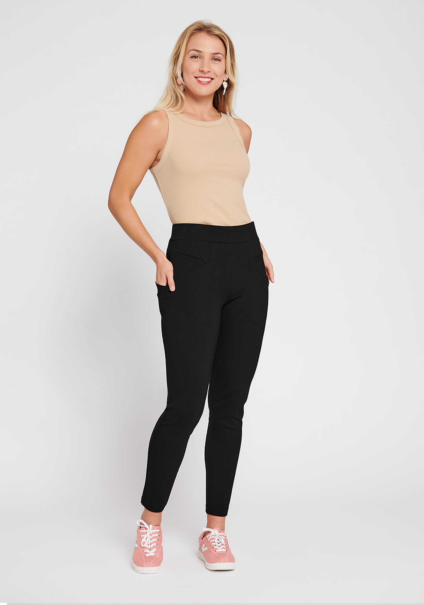 One of the standout features of the Journey Pant is its exceptional comfort. Made from a blend of durable yet soft ponte fabric, these pants offer a stretchy, flexible fit that moves with you. Whether you're navigating through airport security, squeezing into a cramped economy seat, or embarking on an impromptu hike, the Journey Pant ensures unrestricted mobility and lasting comfort.